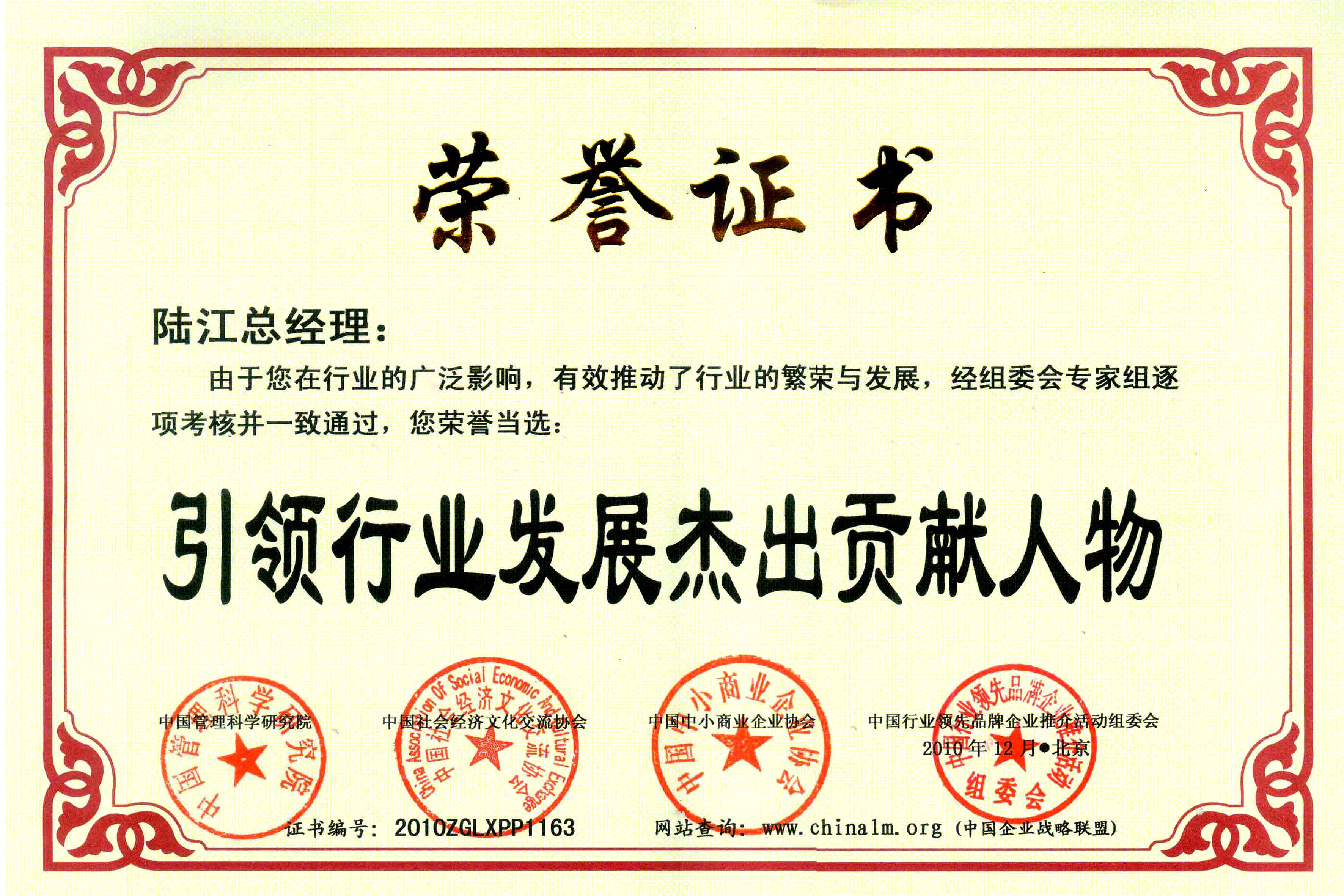 陸江榮獲引領(lǐng)行業(yè)發(fā)展杰出貢獻(xiàn)人物證書(shū) --------卓康公司榮獲全國(guó)質(zhì)量、服務(wù)、信譽(yù)AAA級(jí)品牌證書(shū)