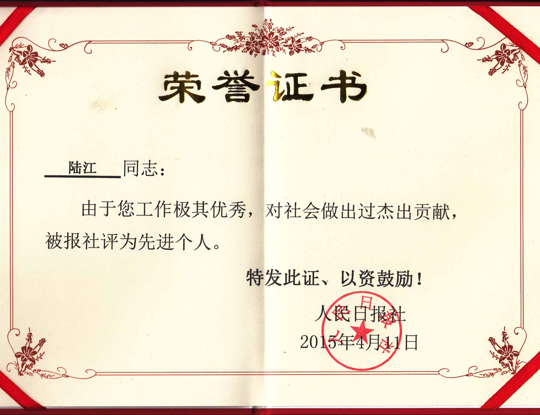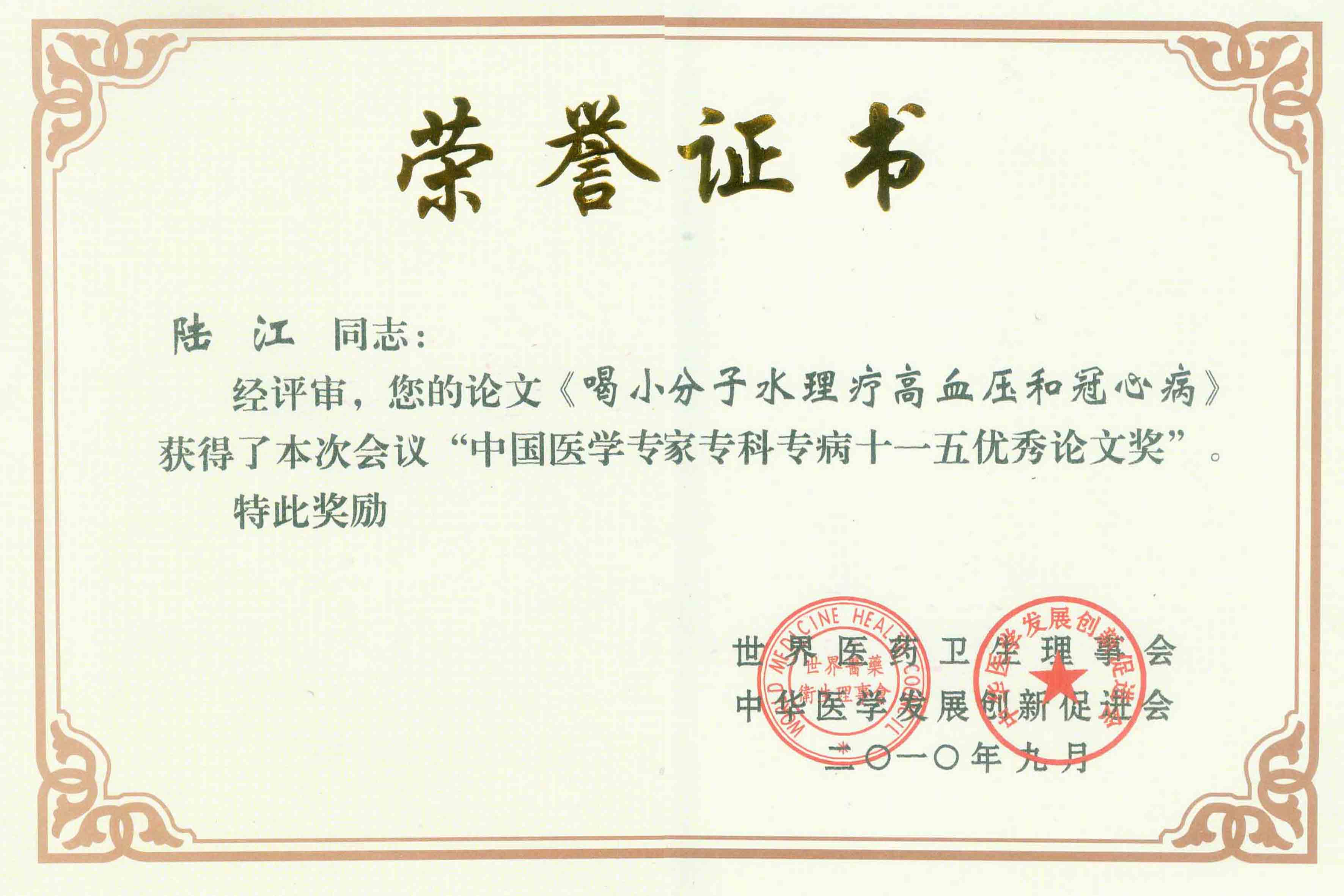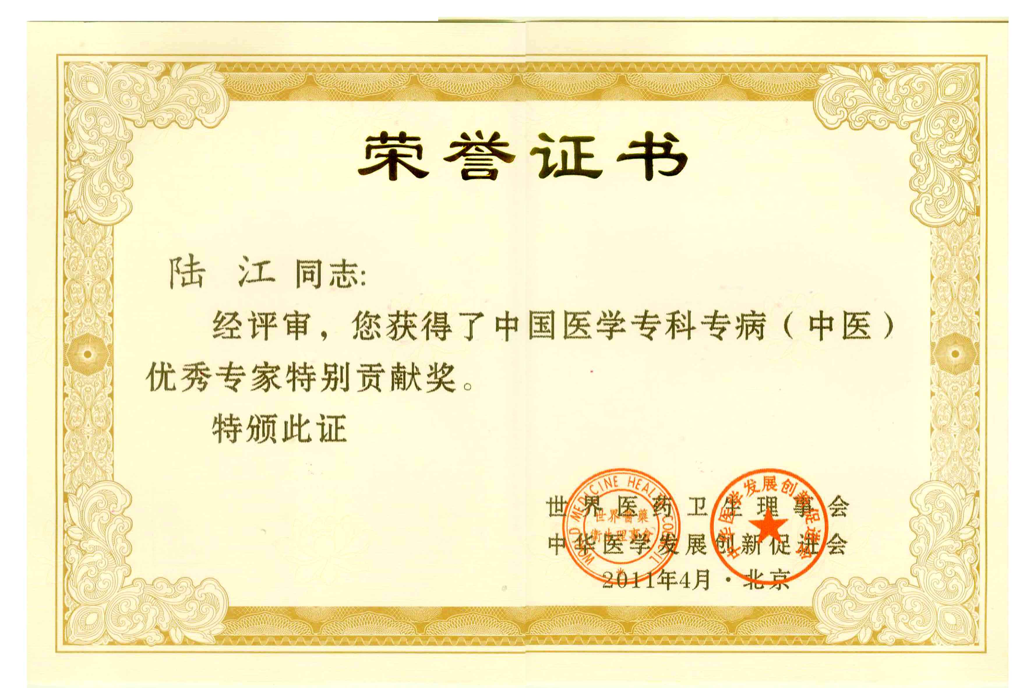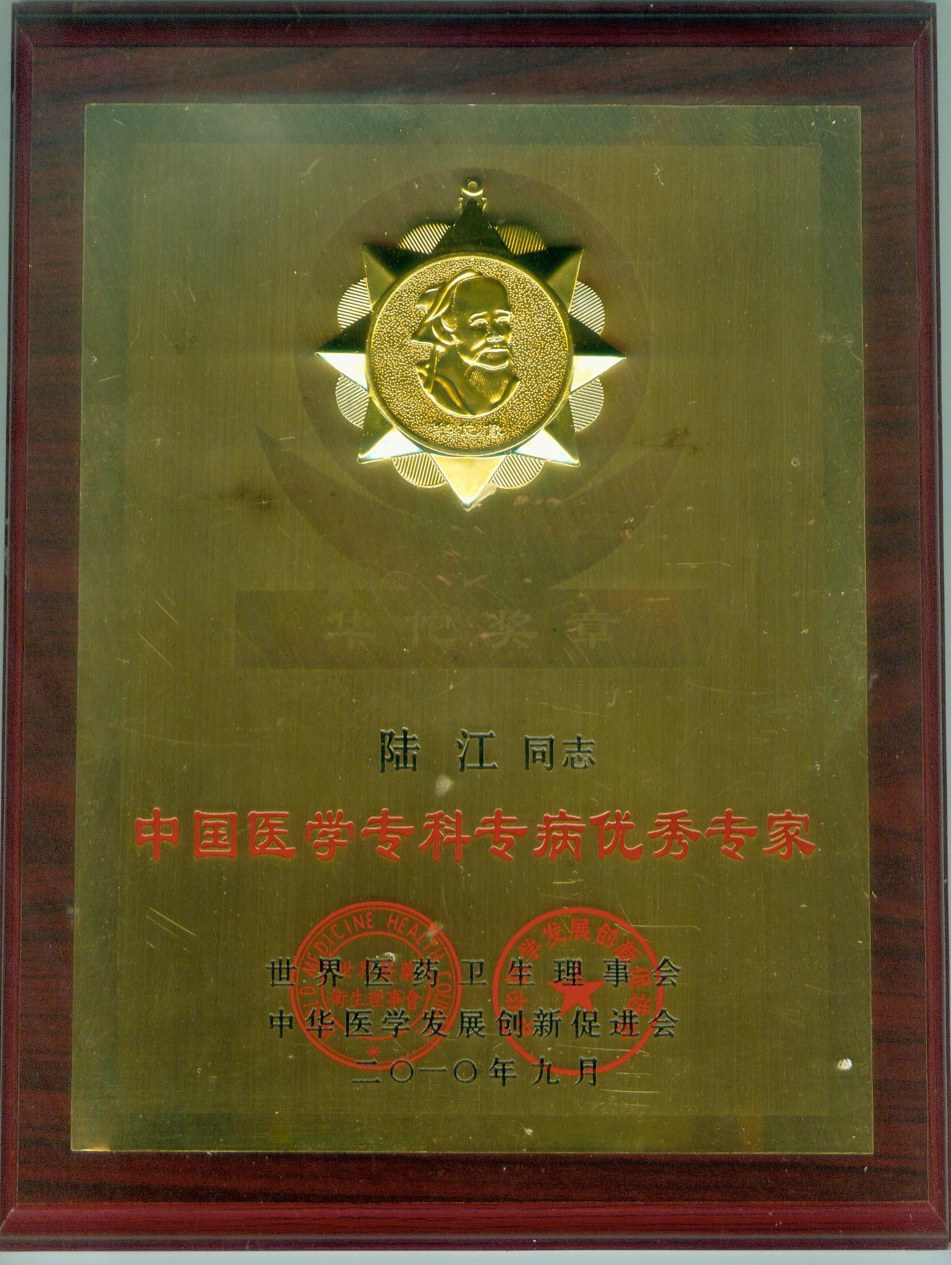陸江獲得中國(guó)醫(yī)學(xué)??茖2?yōu)秀專家恃別貢獻(xiàn)獎(jiǎng)