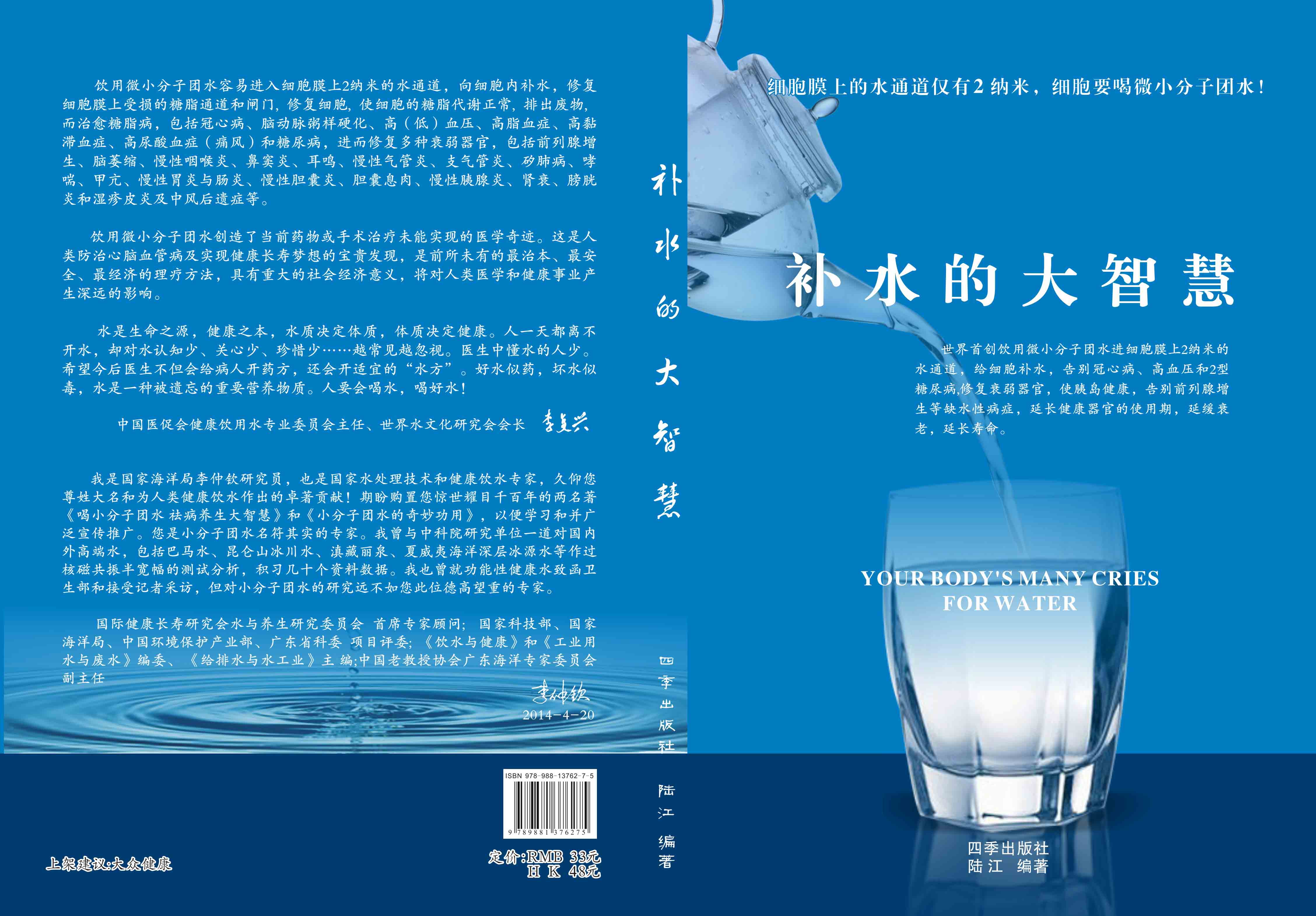 ----現(xiàn)在我們必須弄清細(xì)胞缺水造成了哪些病癥,免得讓我國(guó)當(dāng)代幾億患者和子孫后代繼續(xù)吃掩蓋癥狀和不治本的藥,并應(yīng)認(rèn)清細(xì)胞缺水的普遍性,它引起各種器官細(xì)胞缺水的病癥隨著人的年齡增長(zhǎng)而增多,值得每個(gè)患病者和健康人認(rèn)識(shí)。人飲用微小分子團(tuán)水應(yīng)當(dāng)越早越好,以避免某些器官因細(xì)胞缺水而衰弱,則可延長(zhǎng)健康器官使用期,提高免疫力,延長(zhǎng)壽命。從童年開(kāi)始,則可免患兒童糖尿病和哮喘病。這一自然療法解決了對(duì)心腦血管病無(wú)藥治本的難題,是最治本、最安全、最省錢的理療。人類世世代代將會(huì)廣泛飲用微小分子團(tuán)水,根治三高四病,無(wú)需終生服藥,使患者花錢少,真正治好病,使人的心腦、動(dòng)脈和全身器官獲得健康,可節(jié)省巨額醫(yī)藥資源,最惠民利國(guó)。