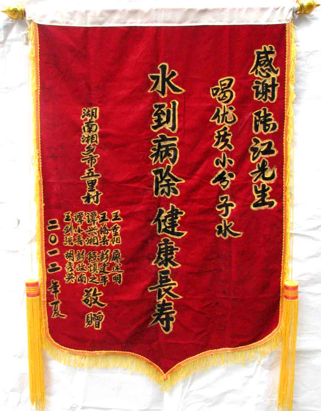 新疆63歲的賀兆生飲用一年,冠心病未愈,他用電話介紹是食堂管理員,問(wèn)他食量多少?說(shuō)吃七八分飽,睡前還吃兩袋牛奶,陸 江說(shuō)我在論文和書(shū)中多次批判“吃七八分飽”,關(guān)照患者務(wù)必用“己饑方食”控制主食肉食量,要他把牛奶改在早中餐吃,減少主食肉食量,建議不吃晩餐,晚上只吃一個(gè)蘋(píng)果,再經(jīng)幾個(gè)月補(bǔ)水節(jié)食,治愈了21年的冠心病和肥胖、失眠等病,信中由衷地感激陸 江為再生父母。[13]因?yàn)獒t(yī)生從未過(guò)問(wèn)他的膳食習(xí)慣,只管開(kāi)處方藥或手術(shù),父母也不會(huì)叫他不吃晩飯。